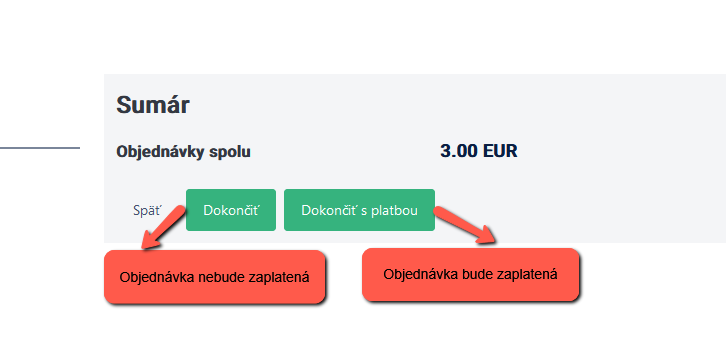 Podľa nastavenia CWO je možné dokončenie objednávky s platbou alebo bez platby. Tlačidlá pre dokončenie platby sa v detaile objednávky zobrazujú podľa nastavenia: