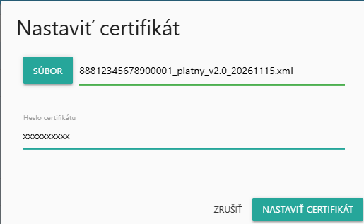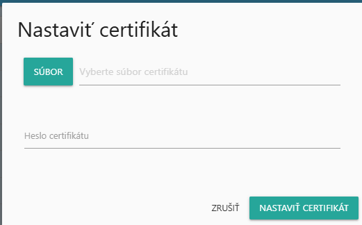 Certifikát si generuje zákazník na portáli finančnej správy, pričom si určí aj heslo, ktoré je potrebné zadať pri pridávaní nového certifikátu do APM.