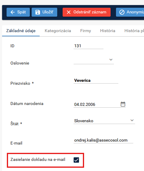 Na hosťovi v PropertyManagemente musí byť aktivovaná možnosť "Zasielanie dokladu na e-mail a hosť musí mať vyplnenú e-mailovú adresu.