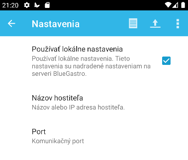 V prípade ak je potrebné lokálne zmeniť nastavenie tak je potrebné povoliť voľbu “Používať lokálne nastavenia” a vyplniť IP adresu a port na platobný terminál