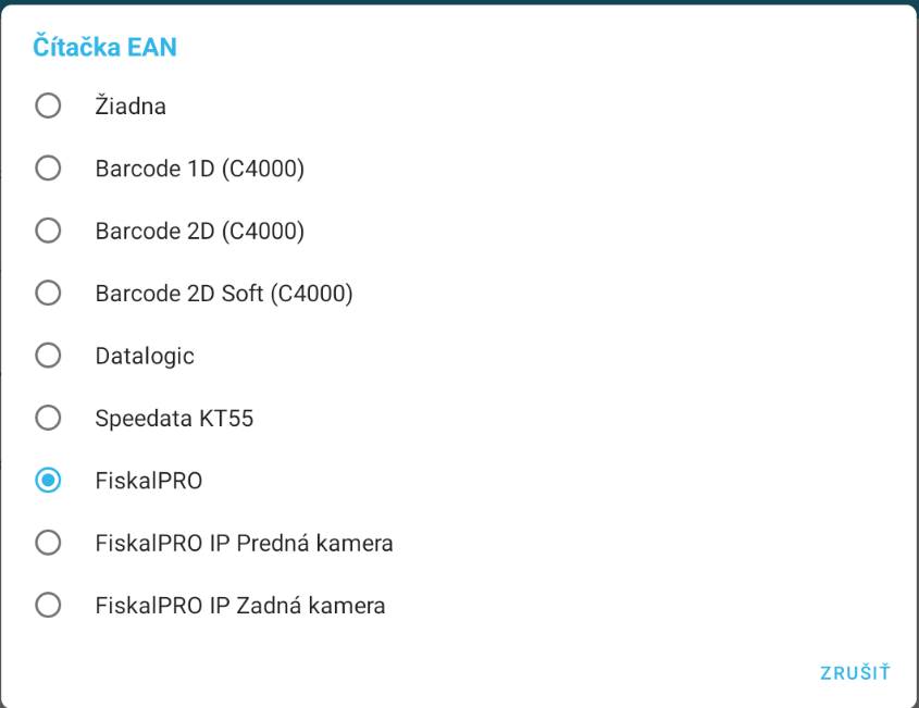 Pri výbere čítačky FiskalPRO IP Predná kamera alebo FiskalPRO IP Zadná kamera je skontrolovať nastavenie IP adresy pre komunikáciu s čítačkou.