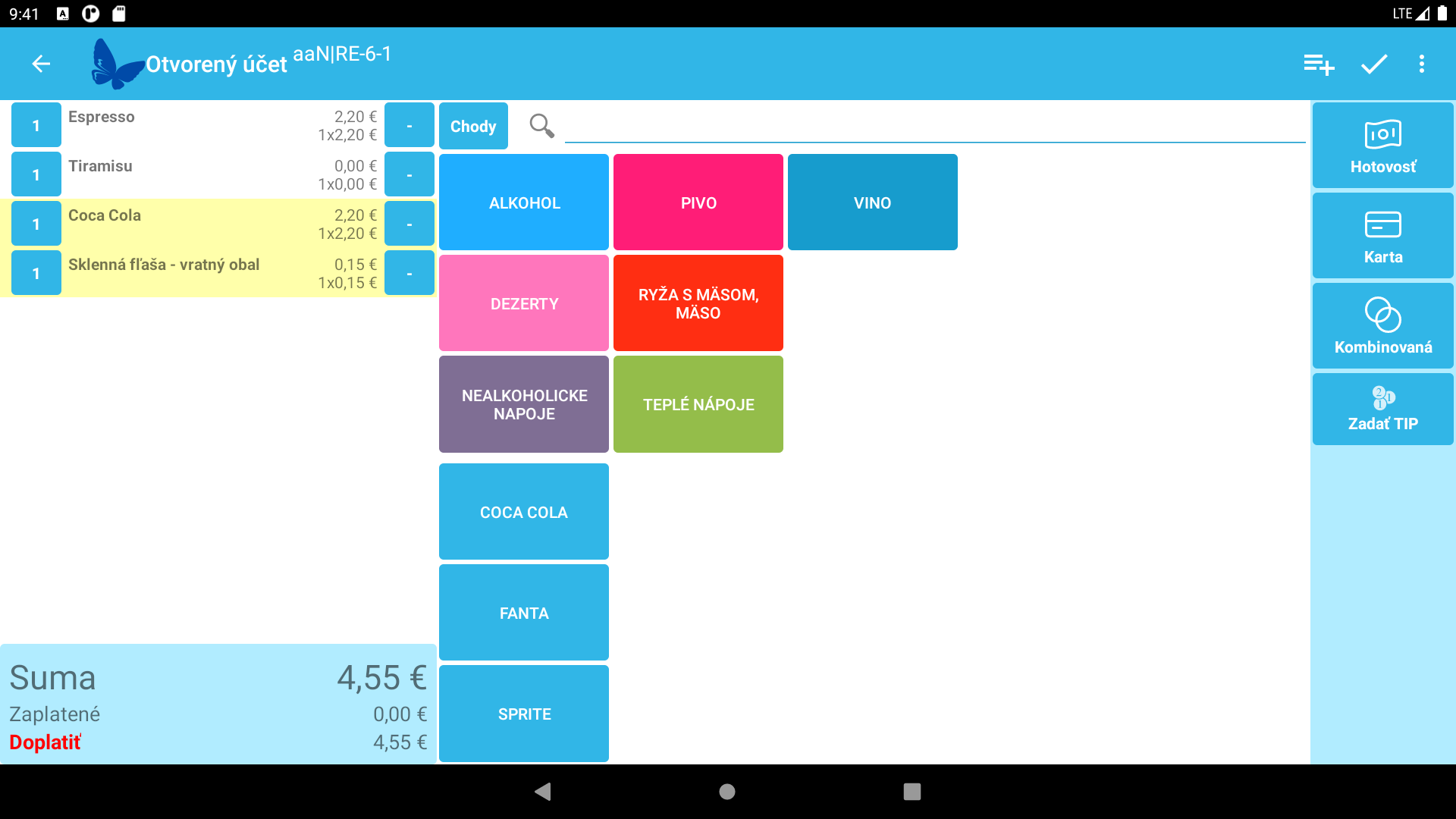 možnosť zadania sprepitného sa zobrazí v prípade, ak sa KASA prepne do okna kombinovanej platby. Po zadaní sprepitného sa automaticky naťaží do účtu na pokladni. Následne je potrebné vybrať platbu a ukončiť účet priamo na kase.