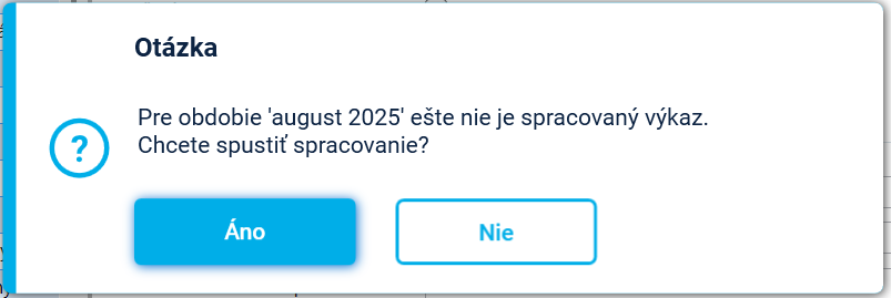 Ak vo vybranom mesiaci nie sú spracované výkazy, pri otvorení okna Výkazy DDS sa program automaticky opýta, či chcete výkazy spracovať.