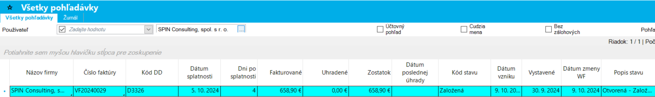 Údaje v okne poskytujú komplentý prehľad všetkých vygenerovaných pohľadávok napr. pre supervízora.